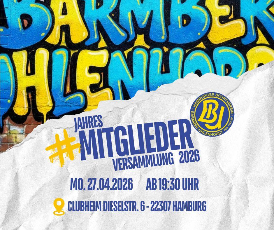 Der Vorstand lädt alle Mitglieder des Vereins zur Jahresmitgliederversammlung am 27.04.2026, ab 19:30 Uhr im Clubheim an der Dieselstraße 6 in 22307 Hamburg ein.