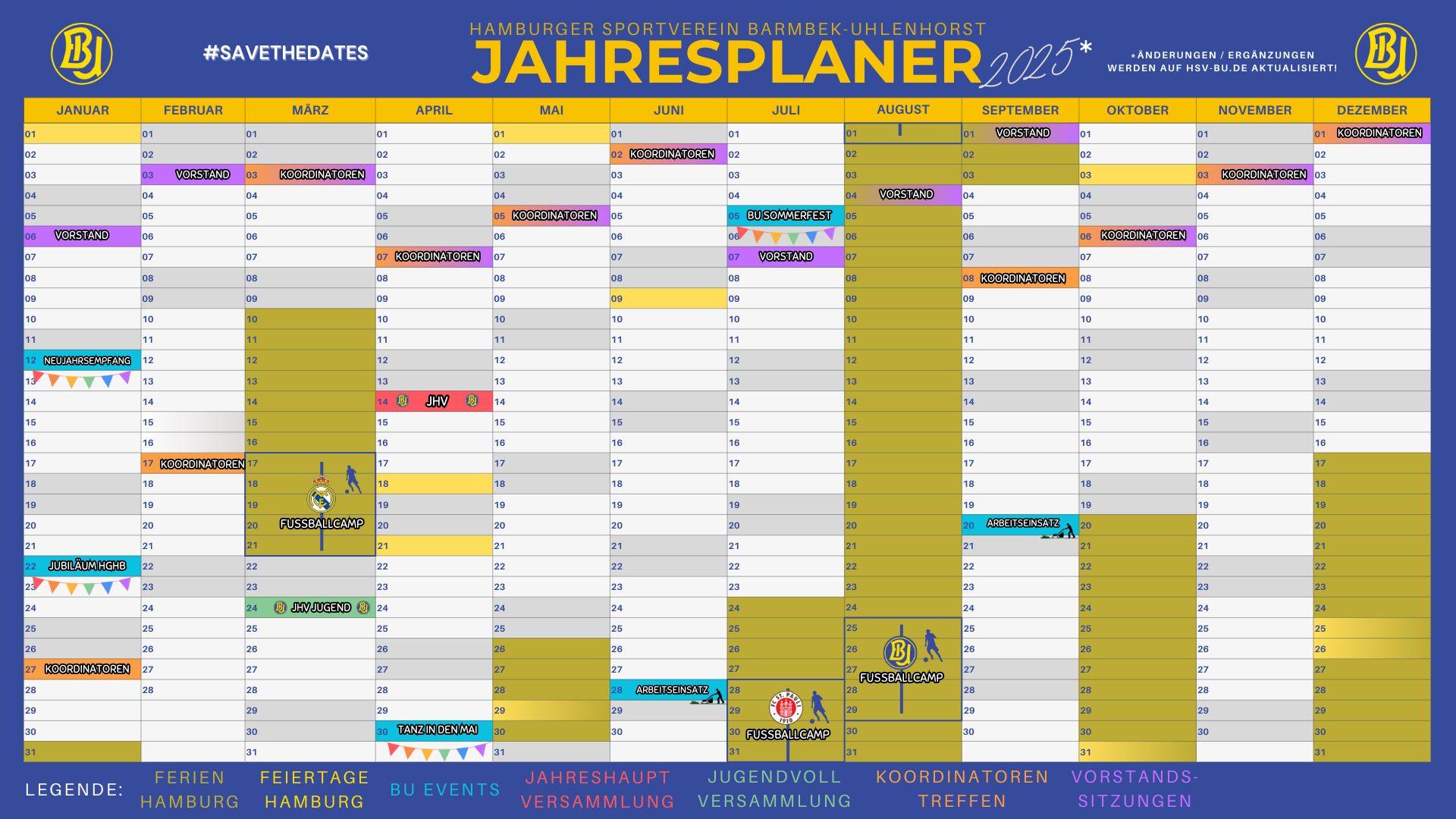 Der BU-Jahreskalender dient als Übersicht für Termine und Veranstaltungen rund um den HSV Barmbek-Uhlenhorst von 1923 e.V. – Als digitale Variante hier auf der Homepage & zum Download als PNG/PDF.